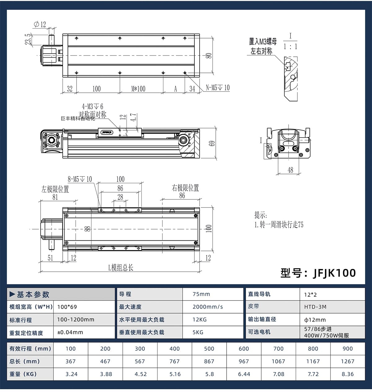 皮带传动的高负载型材模组