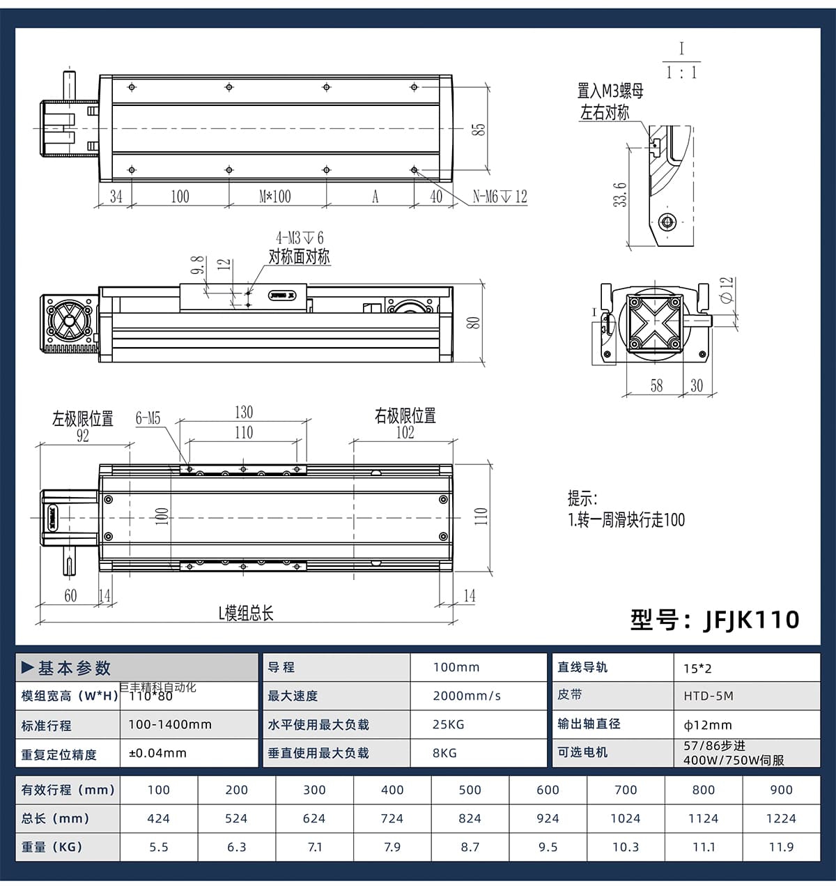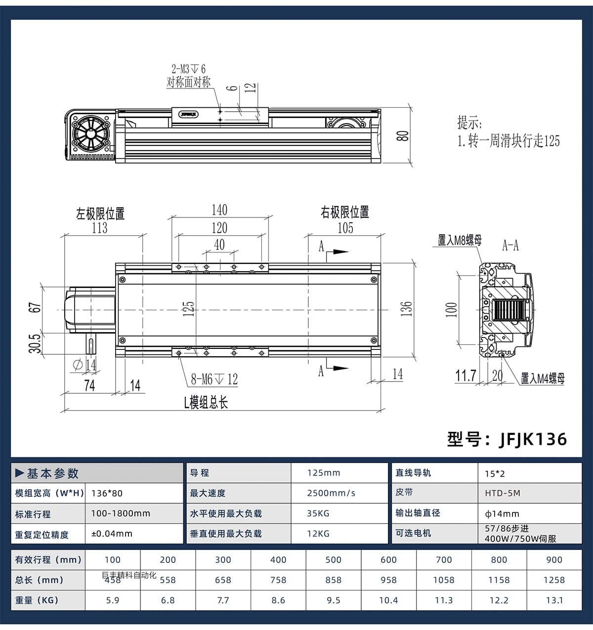 电机装在滑块上的直线模组